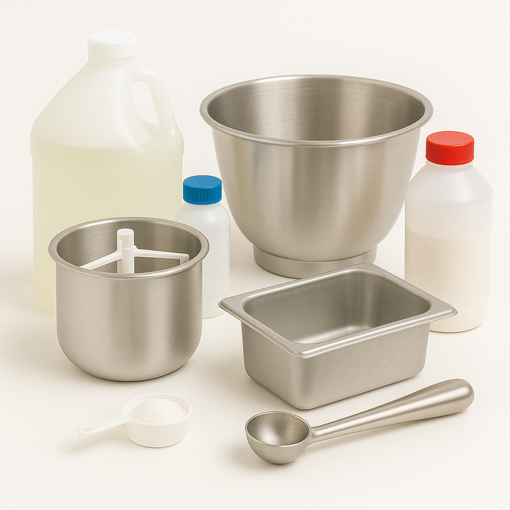 PP (Polypropylene): ทนด่างและคลอรีนได้ดี เหมาะกับภาชนะชั่วคราวหรือภาชนะผสม