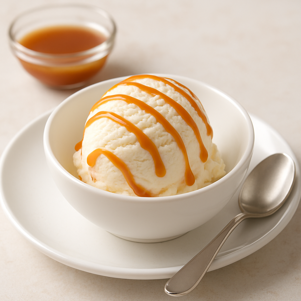 กลิ่นคาราเมล (CM) – หากต้องการให้เนื้อไอศกรีมมีกลิ่นคาราเมลด้วย แนะนำให้ใช้กลิ่นคาราเมลเติมเสริมลงไปเล็กน้อยเพื่อความหอมชัดเจนโดยไม่ต้องผสมคาราเมลลงในเนื้อไอศกรีมมากจนกลายเป็นรสหวานจัดมากเกินไป